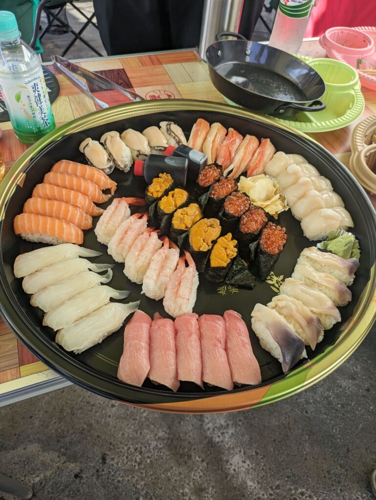 This year, we prepared not only meat but also sushi. After all, sometimes you just crave something light and refreshing.